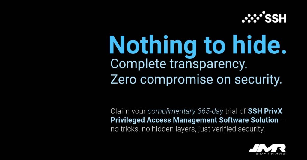 Built for hybrid and multi-cloud environments, SSH PrivX simplifies secure access control without compromising visibility or speed. With JMR Software as your local technology partner, you can experience a fully functional PAM solution — at no cost — for a full year.